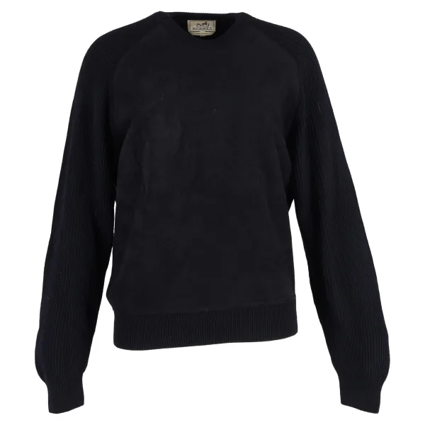 Hermès Geperforeerde Gebreide Trui in Zwart Wol