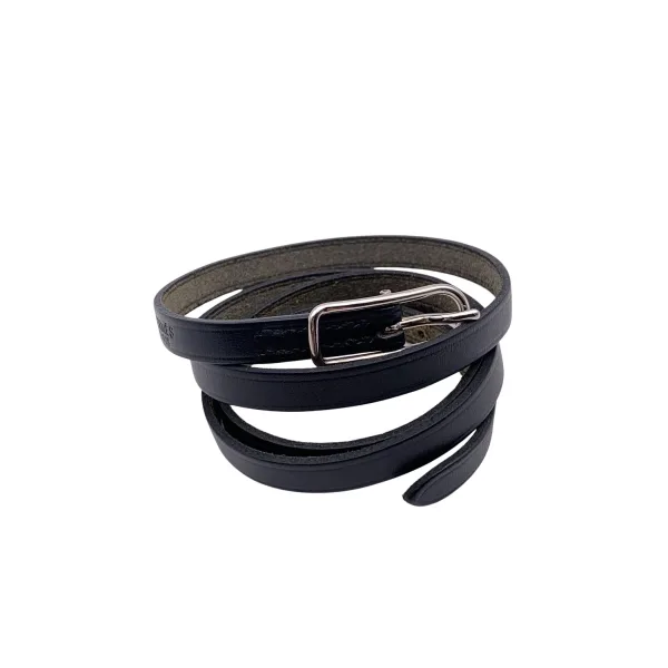 Aanbevolen verkoopprijs Vintage Hermes leren verstelbare Hapi 4 Quad Tour armband in zwart. Palladium gesp. Verstelling met 3 gaatjes. Totale lengte van de band: 28 inch - 71,2 cm. Gesigneerd 'Hermes Paris' op het leer. 'Hermes' gegraveerd op de achterkant van de gesp. Blindstempel D gegraveerd op de achterkant van de armband (productiejaar: 2000). Conditie: A - UITSTEKEND. Conditiedetails: Licht gebruikt. Inclusief Hermes doos. Bekijk de foto's aandachtig en vraag gerust om meer informatie. Doos?: ?: Ja. Afmetingen: lengte: 711 mm, bandlengte: 0 mm, hoogte handvat: 0 mm