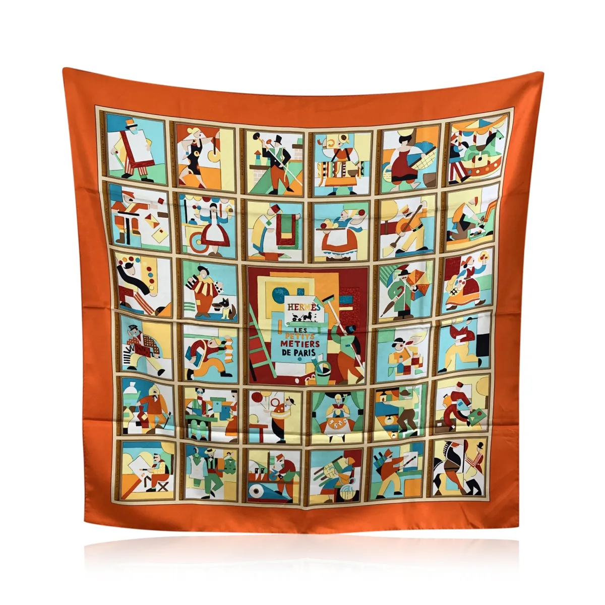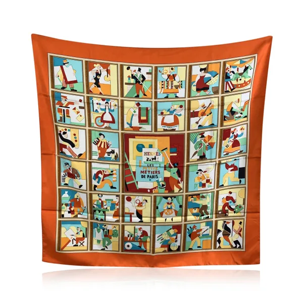 VINTAGE, RRP ALS NIEUW HERMES Zijden sjaal genaamd 'Les Petits Métiers de Paris', gecreëerd door kunstenaar Karen Petrossian, en voor het eerst uitgebracht in 2006. Het toont verschillende soorten ambachtslieden uit Parijs. Multicolor ontwerp met oranje randen. 100% Zijde. Handgerolde randen. Ongeveer afmetingen: 35 x 35 inch - 88,8 x 88,8 cm. Hermes compositietag nog bevestigd. Conditiewaardering: B - SEHR GOEDE CONDITIE. Conditiedetails: Enkele getrokken draden op dezijde door normaal gebruik. Controleer de foto's zorgvuldig en vraag als u meer details wilt weten of als u twijfels hebt. Doos?: Nee Afmetingen: lengte: 888 mm hoogte: 888 mm