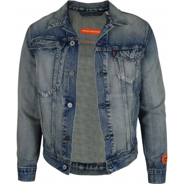 Levi's x Heron Preston-samenwerking.Gewassen spijkerjack.Lange mouwen.Gebroken kraag.Manchetten met knopen.Knoopsluiting aan de voorkant.Klepzakken op de borst.Heron Preston-logo op de linkermouw genaaid.'Concrete jungle'-inscriptie op de linkermouw in roze en paars.Beige lederen logopatch op de linkermouw achterkant.Zakken in de taille.100% katoen.