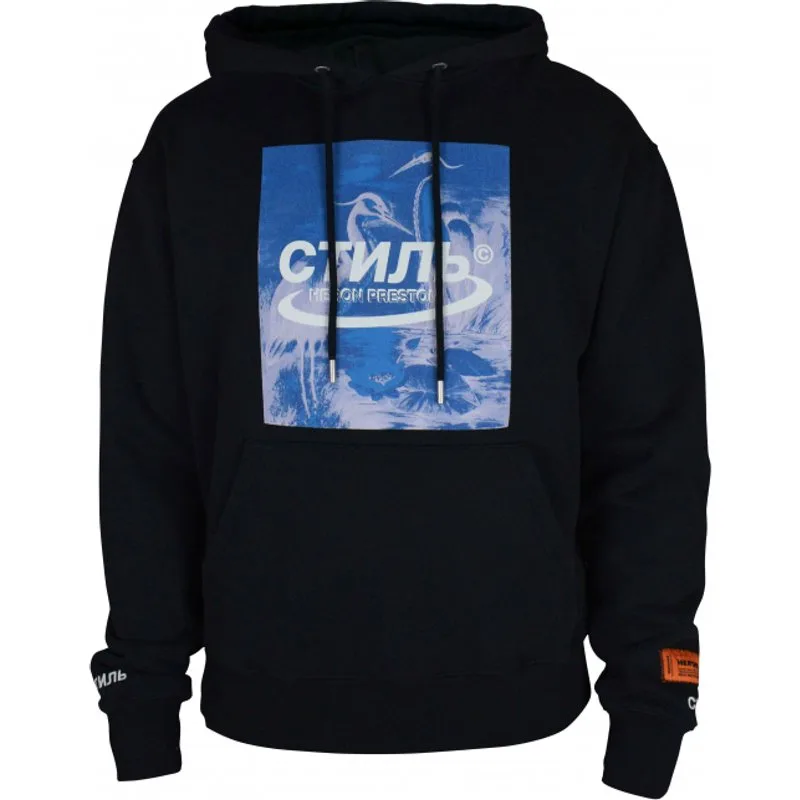 Heron Preston hoodie van zwart katoen.Lange mouwen met logoprint en blauwe pelikanen.Inzetstuk met logopatch op de mouw.Witte logopatch op de achterkant.Witte manchetten met CTNMB-logoprint.Kangaroezak aan de voorkant.Geribbelde randen.100% katoen.
