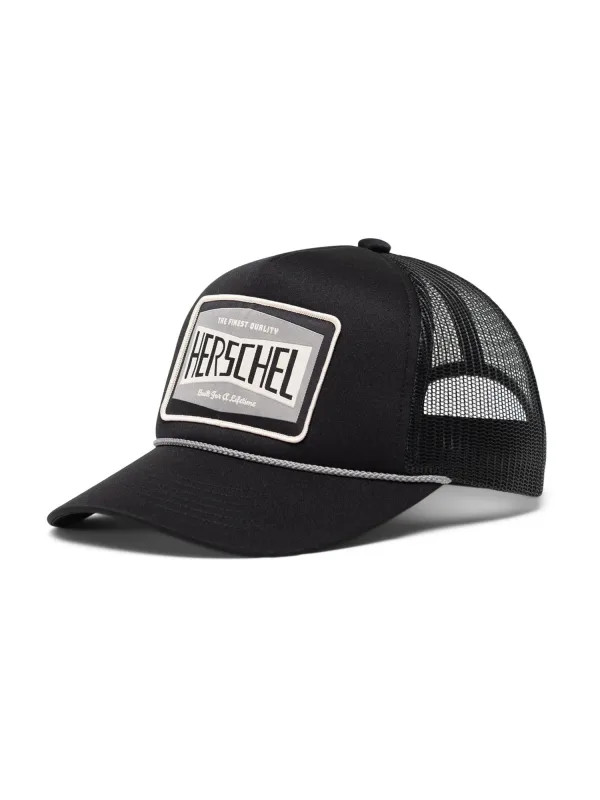 Pet detail: Gebogen scherm; Design: Gevoerde zoom/rand; Motief: Logoprint; Materiaal: Textiel; Captype: Trucker pet; Extra's: Label borduurwerk, Op staal naden, Wijdte verstelbaar