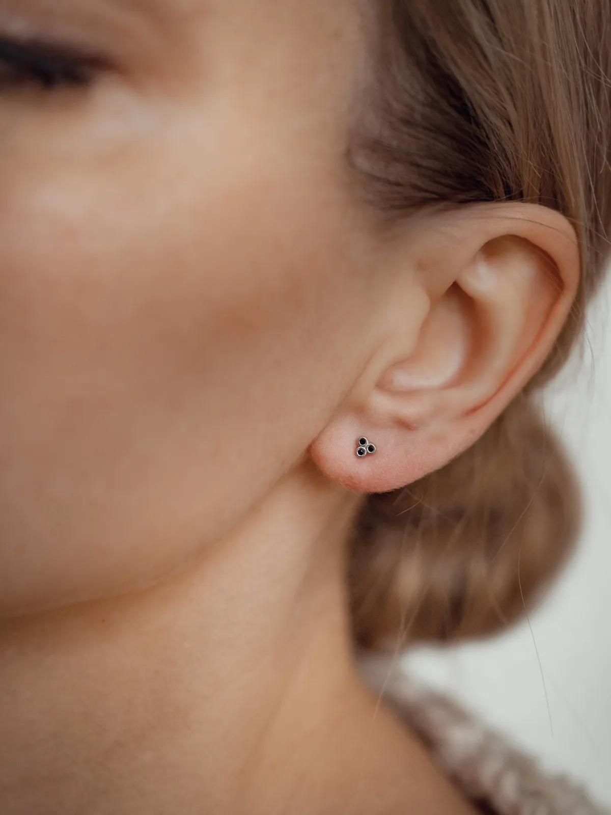 Hey Happiness Oorbellen ‘Black Triad’ zilver
