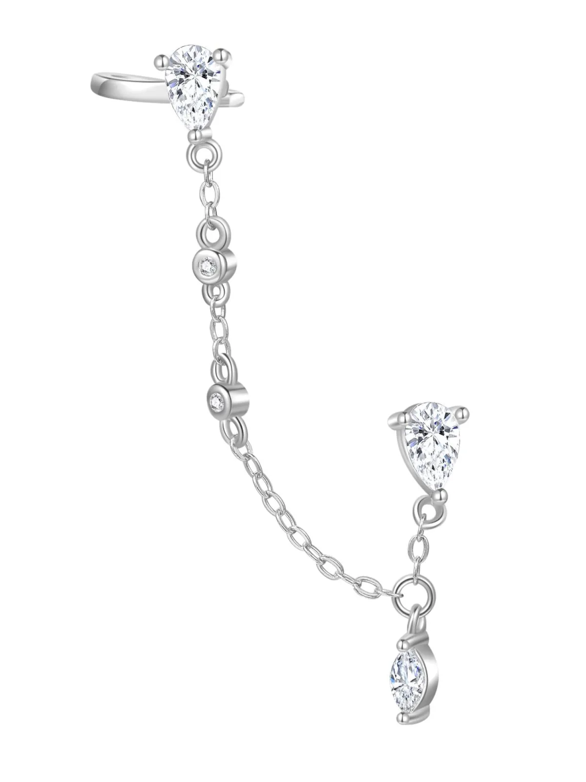 Hey Happiness Oorbellen ‘Chain Cuff’ zilver