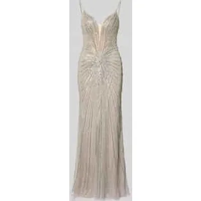 Dames avondjurk van Hey Kyla;all-over siersteentjes;Semi-transparant design;naadritssluiting;spaghettibandjes;Ondoorzichtige onderrok;ruglengte bij maat 36: 130 cm;Borstwijdte bij maat 36: 35 cm