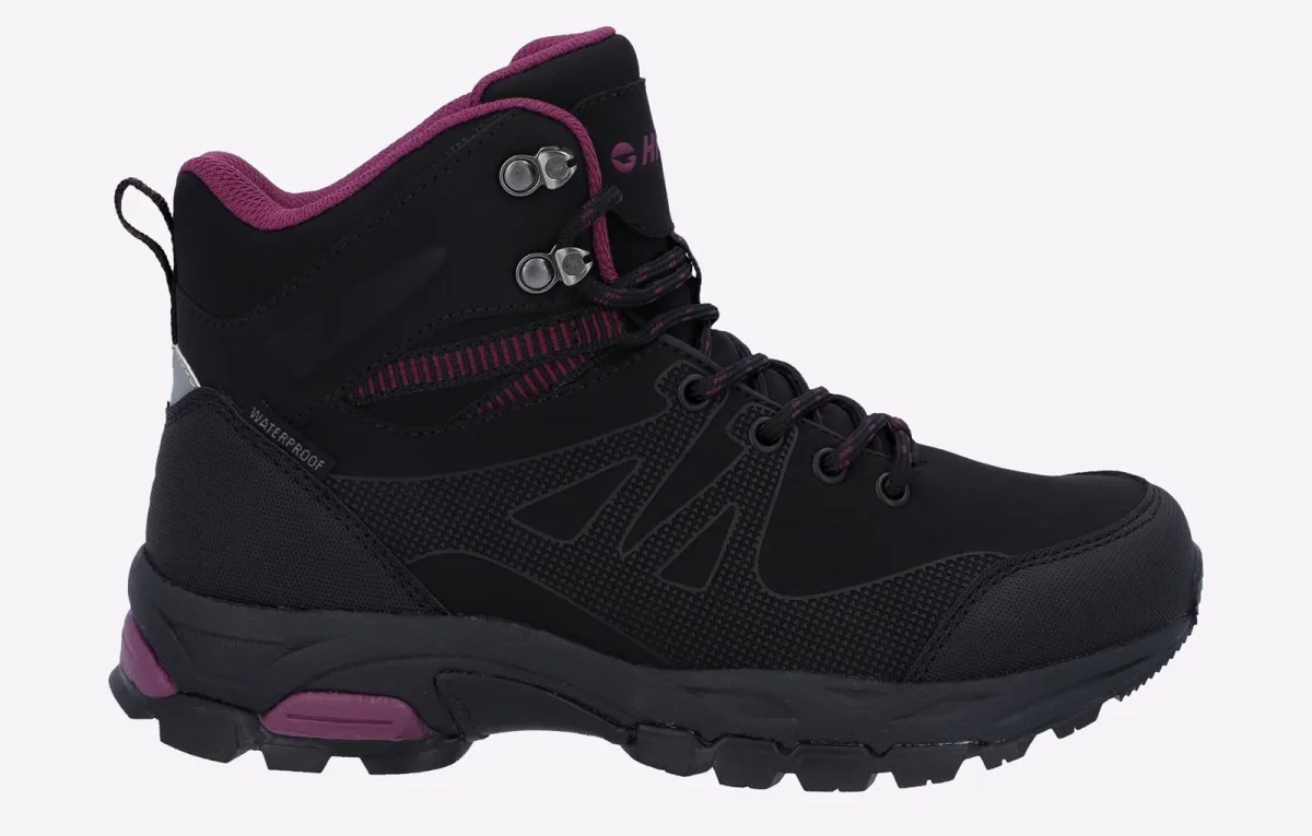 Hi-Tec Jackdaw Mid WP Polyester Dames Zwart/Bordeaux Wandelschoenen Prijzen