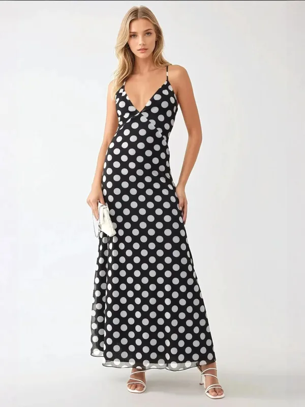 Design: A-lijn; Halstype: V-hals; Motief: Gestippeld; Details: Backless; Extra's: All-over patroon; Lengte: Lang/maxi; Pasvorm: Normale pasvorm; Armlengte: Kwartmouw