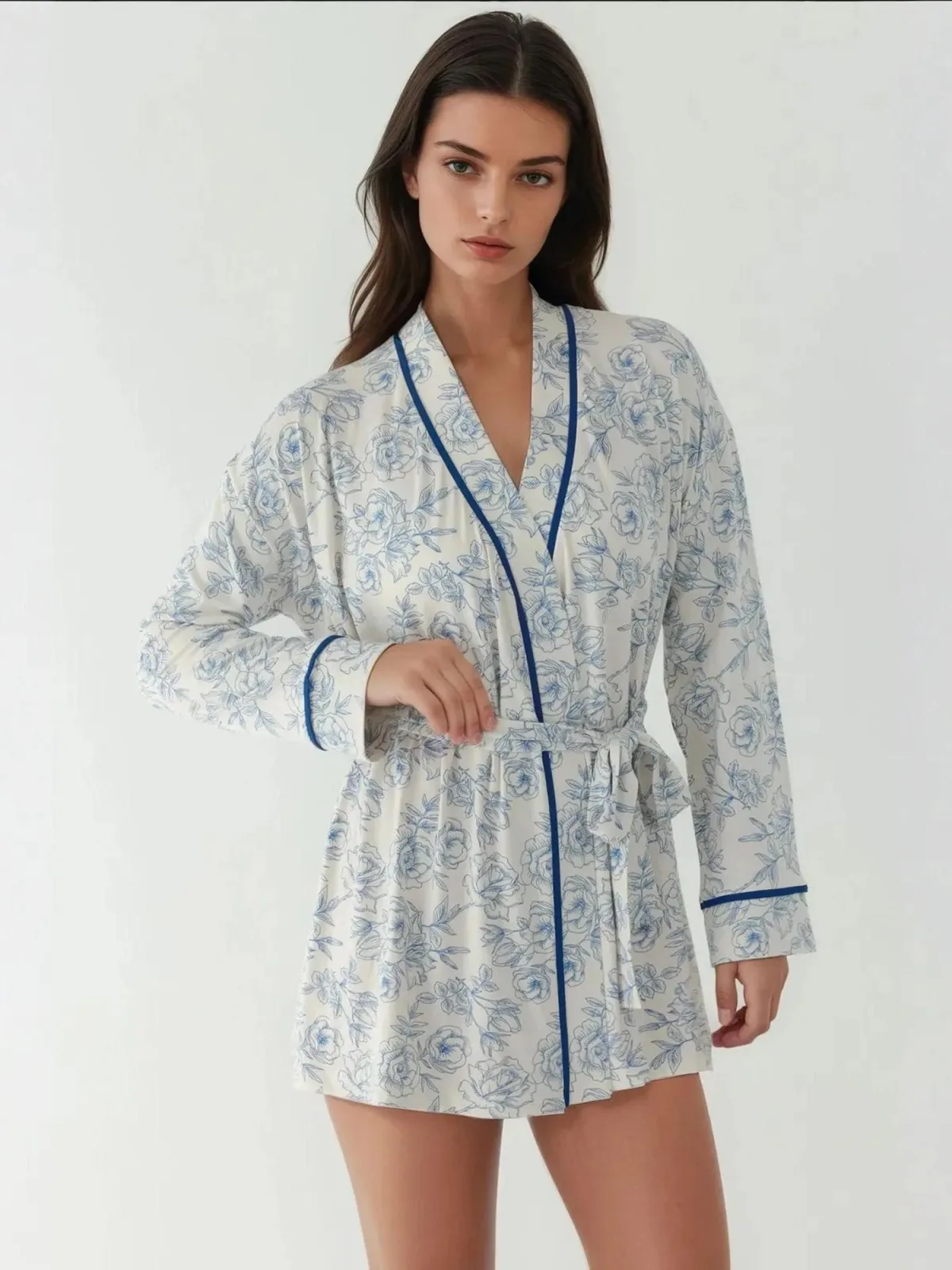 Design: Gevoerde zoom/rand, Met riem; Motief: Bloemenprint; Extra's: All-over patroon, Voelt zacht aan