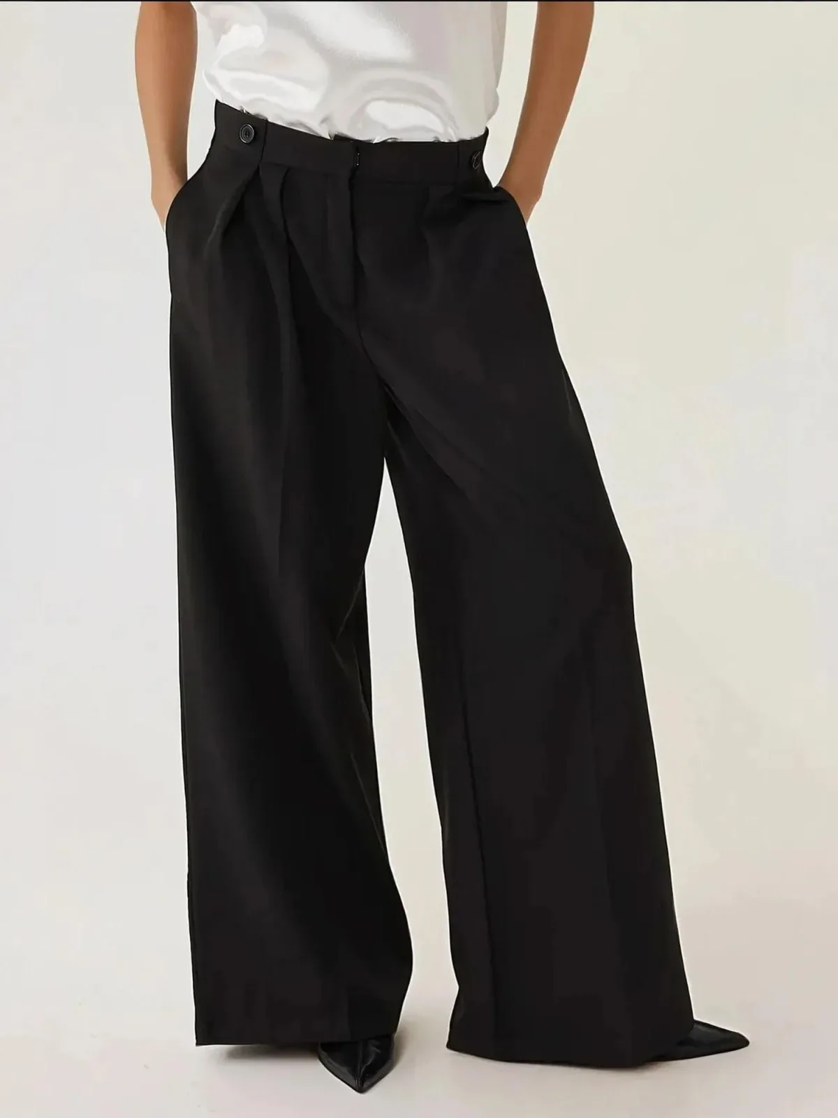 Design: Zakken aan de zijkant; Type sluiting: Ritssluiting; Motief: Effen; Details: Plooien; Extra's: Riemlussen; Lengte: Lang/maxi; Pasvorm: Wide leg; Taillehoogte: Mid waist