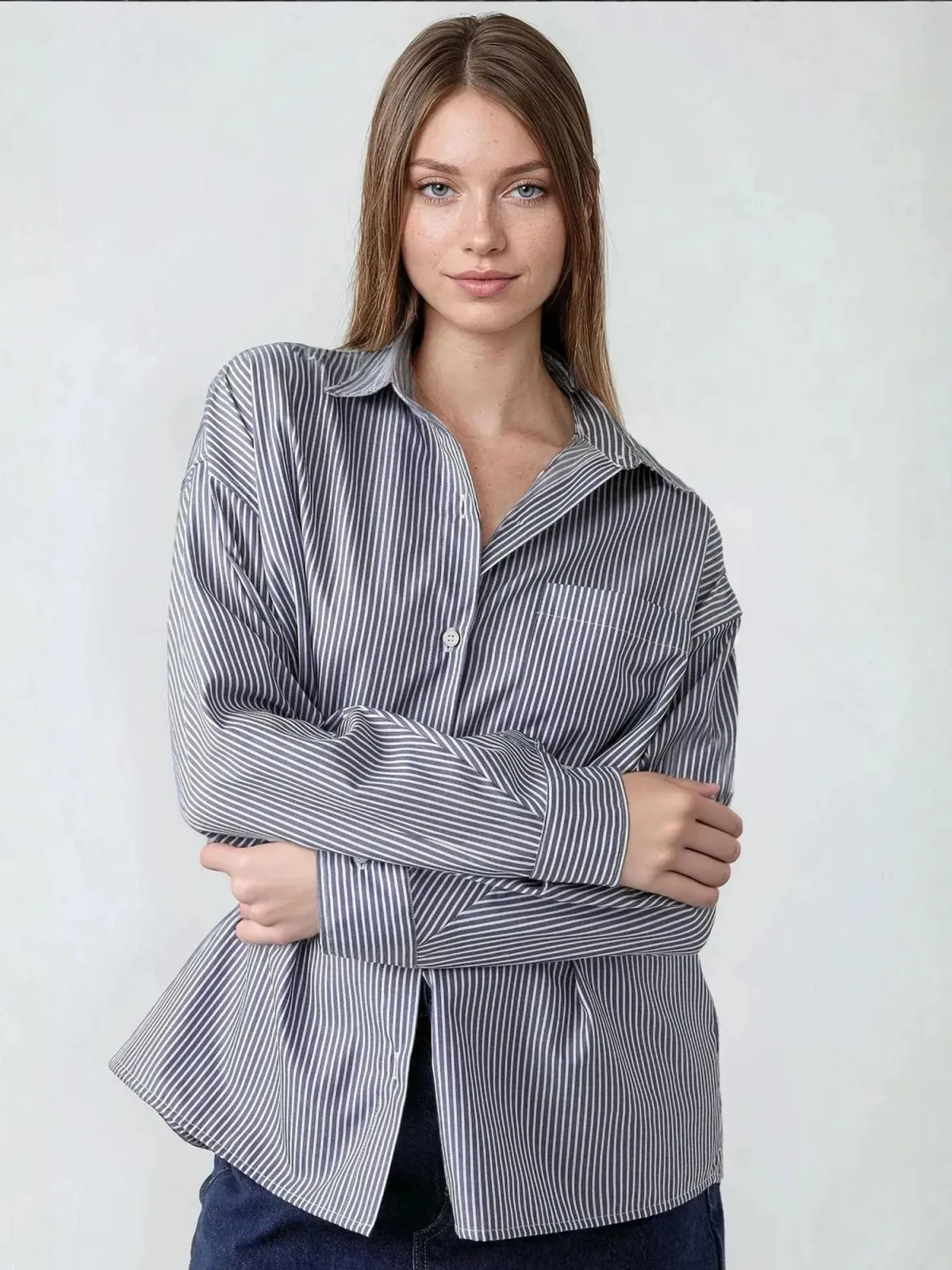 Blouse type: Klassieke blouse; Design: Overcut schouder; Type sluiting: Knoopsluiting; Materiaal: Katoen; Motief: Gestreept; Kraag: Kentkraag; Extra's: All-over patroon; Pasvorm: Losse pasvorm; Armlengte: Lange mouw; Lengte: Normale lengte