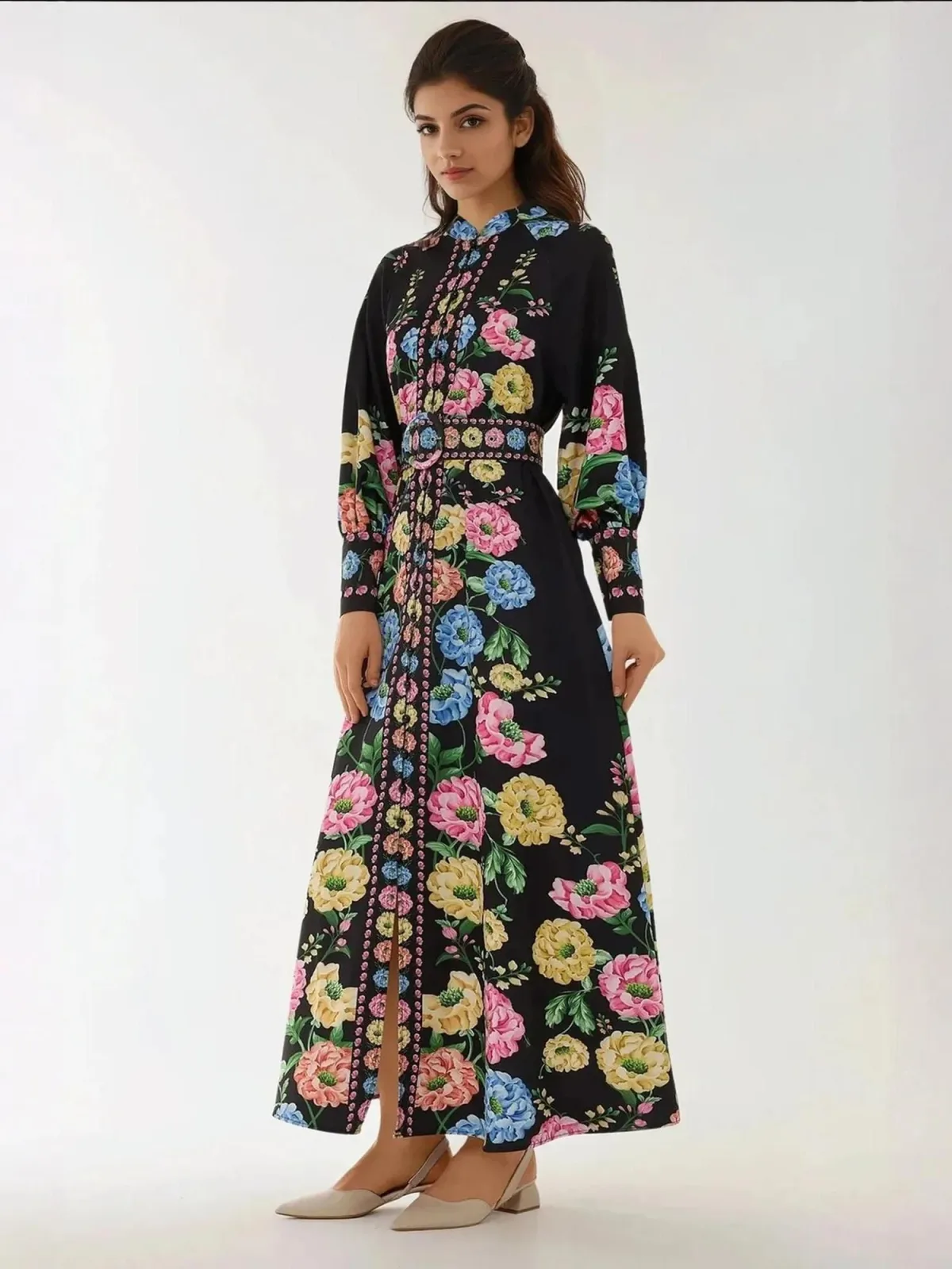 Design: Gevoerde zoom/rand; Type sluiting: Knoopsluiting; Motief: Bloemenprint; Kraag: Opstaande kraag; Details: Gedrapeerd; Extra's: All-over patroon; Lengte: Lang/maxi; Snit: Getailleerd; Pasvorm: Normale pasvorm; Armlengte: Lange mouw