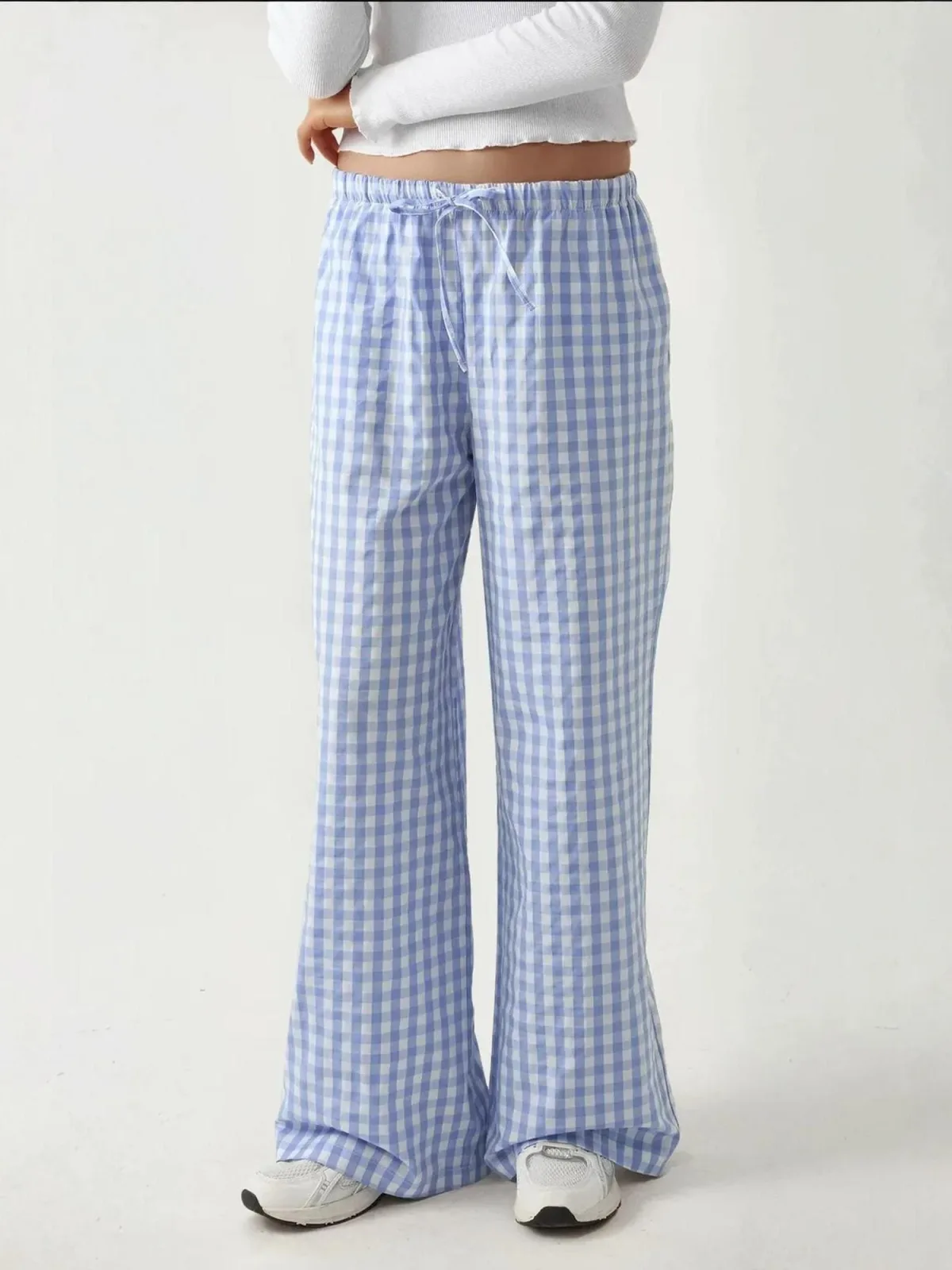 Design: Taille met trekkoord, Elastische taille/zoom; Materiaal: Katoen; Motief: Geruit; Details: Gedrapeerd; Extra's: All-over patroon; Lengte: Lang/maxi; Pasvorm: Wide leg; Taillehoogte: Mid waist