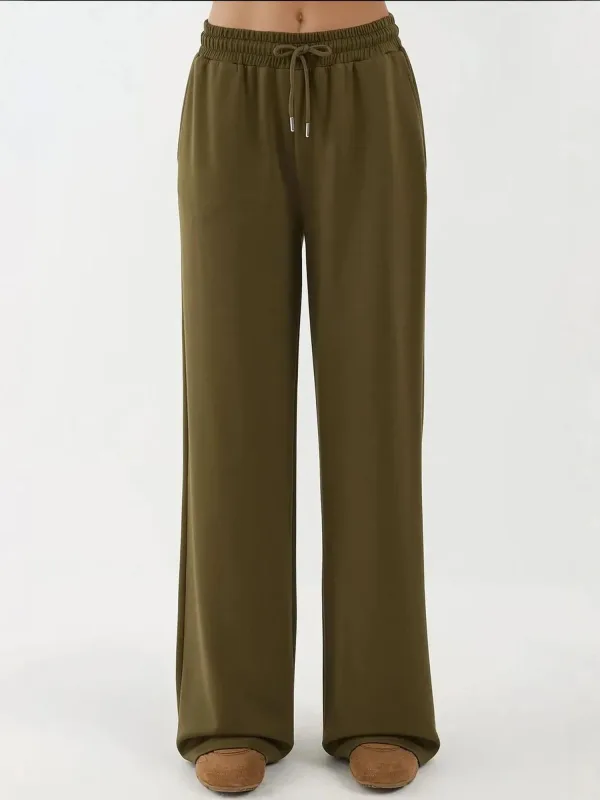 Design: Taille met trekkoord, Zakken aan de zijkant; Type sluiting: Elastische band; Materiaal: Sweatstof; Motief: Effen; Extra's: Op staal naden, Zacht opgeruwde binnenkant; Lengte: Lang/maxi; Pasvorm: Wide leg; Taillehoogte: Mid waist
