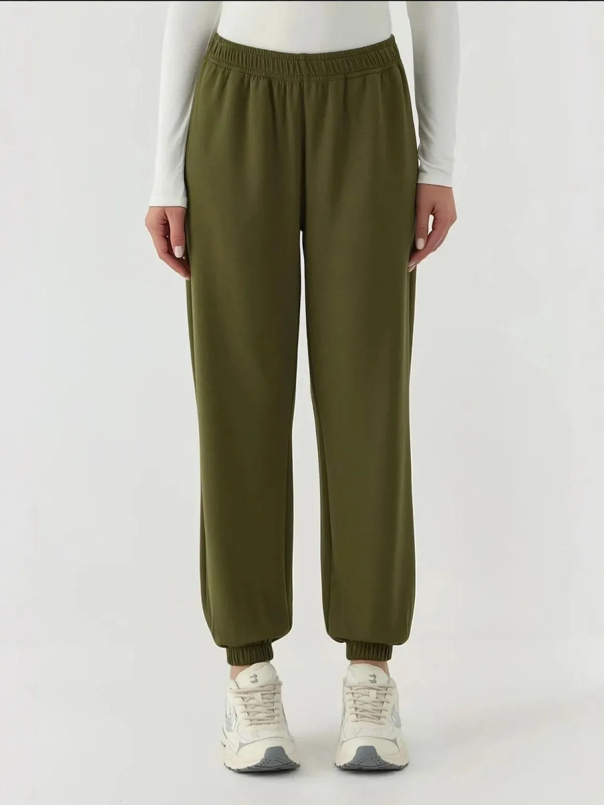 Design: Elastische taille/zoom, Zakken aan de zijkant; Materiaal: Sweatstof; Motief: Effen; Details: Gedrapeerd; Extra's: Voelt zacht aan; Lengte: 7/8 lengte; Pasvorm: Tapered; Taillehoogte: High waist