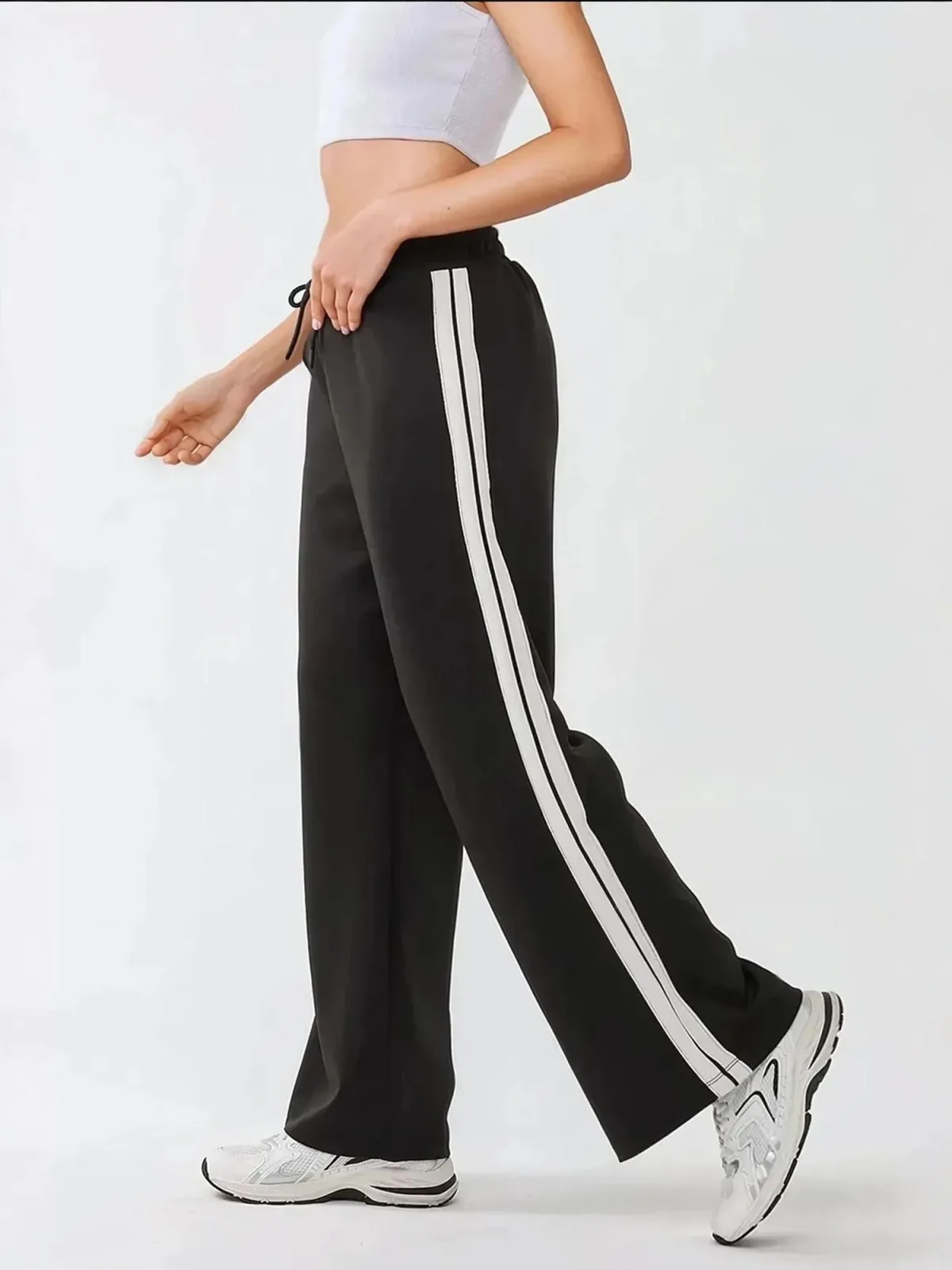 Design: Gevoerde zoom/rand; Materiaal: Sweatstof; Motief: Effen; Details: Gedrapeerd, Zijstrepen; Extra's: Voelt zacht aan; Lengte: Lang/maxi; Pasvorm: Wide leg; Taillehoogte: Mid waist