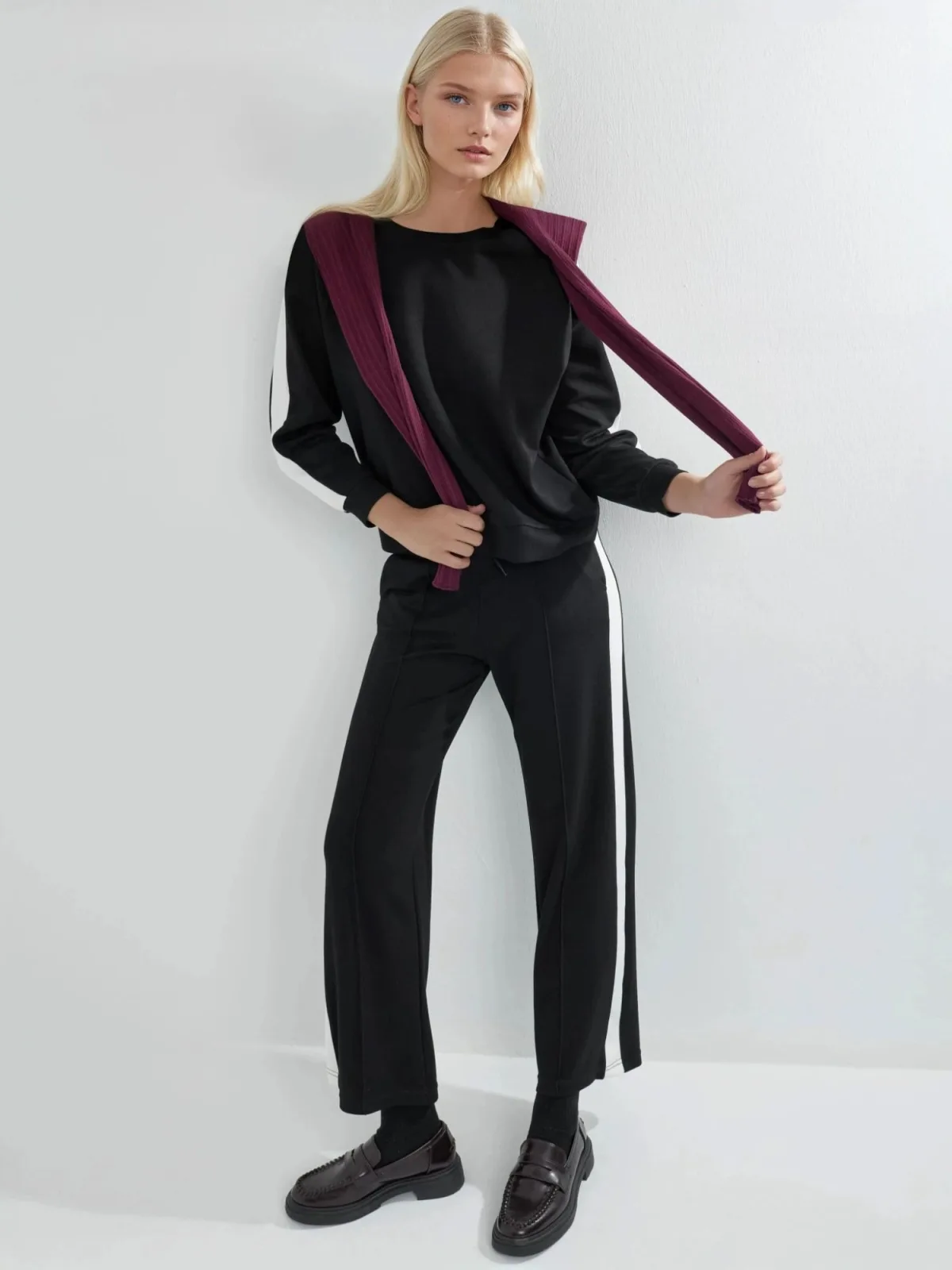 Design: Elastische taille/zoom, Zijdelingse strepen; Voering: Niet gevoerd; Materiaal: Sweatstof; Halstype: Ronde hals; Details: Zijstrepen; Extra's: Voelt zacht aan; Lengte: Lang/maxi; Pasvorm: Normale pasvorm; Armlengte: Lange mouw