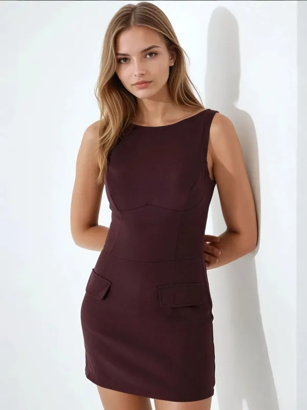 Design: Opzet-/flapzak; Type sluiting: Ritssluiting; Halstype: Ronde hals; Motief: Effen; Soort bandjes: Brede bandjes; Extra's: Gladde stof; Lengte: Kort/mini; Snit: Figuur omarmend; Pasvorm: Aansluitende pasvorm; Armlengte: Mouwloos