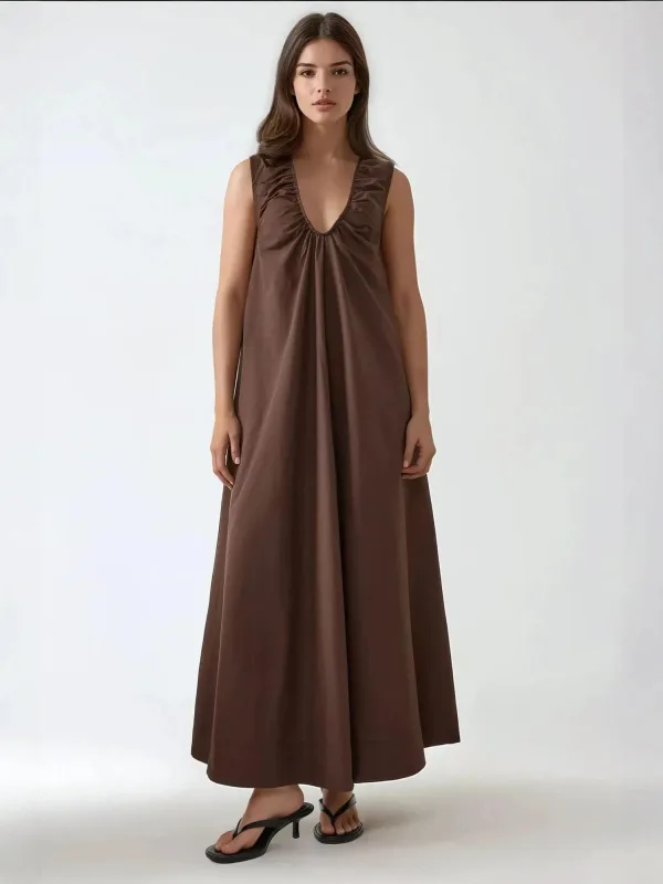 Design: Gevoerde zoom/rand; Materiaal: Katoen; Halstype: V-hals; Motief: Effen; Soort bandjes: Brede bandjes; Details: Gedrapeerd; Extra's: Voelt zacht aan; Lengte: Lang/maxi; Snit: Uitlopend; Pasvorm: Wijde pasvorm; Armlengte: Mouwloos