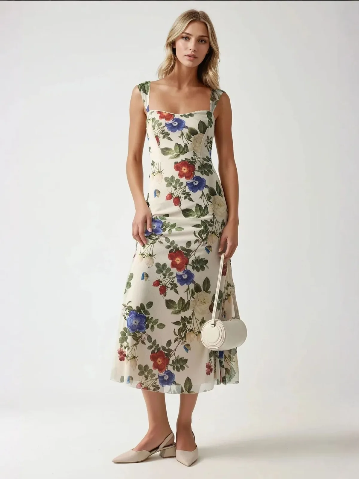Design: Gevoerde zoom/rand, Met onderrok; Type sluiting: Ritssluiting; Motief: Bloemenprint; Extra's: All-over patroon, Lichte stof; Lengte: 3/4 lengte; Snit: Getailleerd; Pasvorm: Slanke pasvorm; Armlengte: Mouwloos