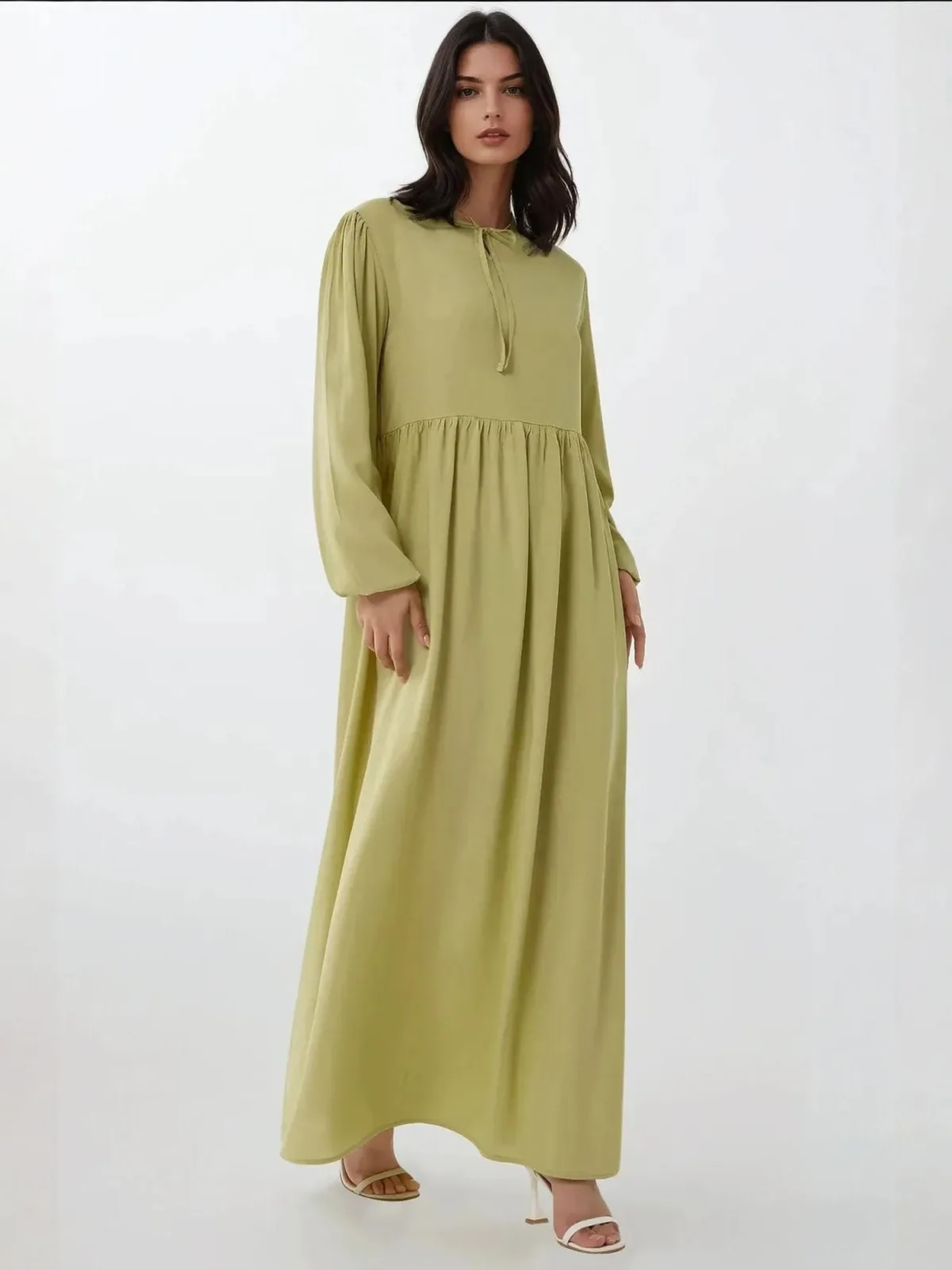 Design: Gevoerde zoom/rand, Rechte zoom, Pofmouwen, Om te knopen/binden; Materiaal: Chiffon; Motief: Effen; Details: Gedrapeerd; Extra's: Op staal naden, Gladde stof; Lengte: Lang/maxi; Snit: Recht; Pasvorm: Wijde pasvorm; Armlengte: Lange mouw