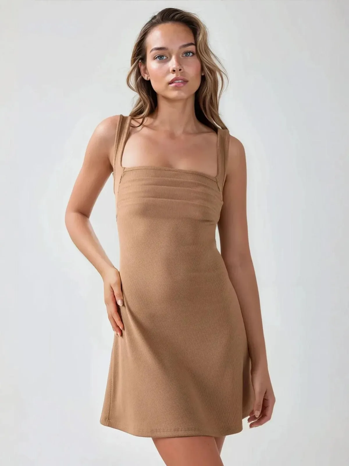 Design: Gevoerde zoom/rand; Materiaal: Jersey; Halstype: Carréhals; Motief: Effen; Soort bandjes: Normale bandjes; Details: Cut-outs, Plooien; Extra's: Op staal naden; Lengte: Kort/mini; Snit: Getailleerd; Pasvorm: Slanke pasvorm; Armlengte: Mouwloos