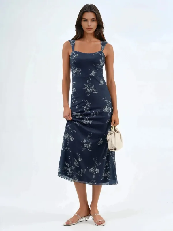 Design: Diepe snit/decolleté; Type sluiting: Slip; Halstype: Boothals; Motief: Bloemenprint; Soort bandjes: Brede bandjes; Extra's: All-over patroon; Lengte: 3/4 lengte; Snit: Getailleerd; Pasvorm: Slanke pasvorm; Armlengte: Mouwloos