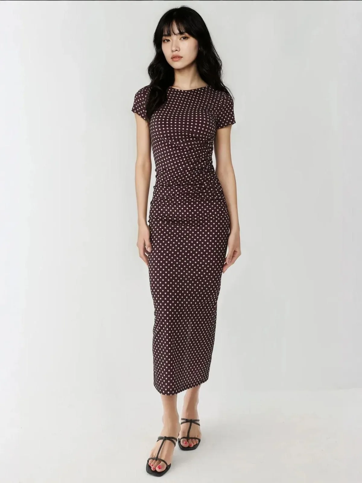 Design: Gevoerde zoom/rand; Halstype: Ronde hals; Motief: Gestippeld; Details: Gedrapeerd; Extra's: All-over patroon; Lengte: 7/8 lengte; Pasvorm: Normale pasvorm; Armlengte: Kwartmouw