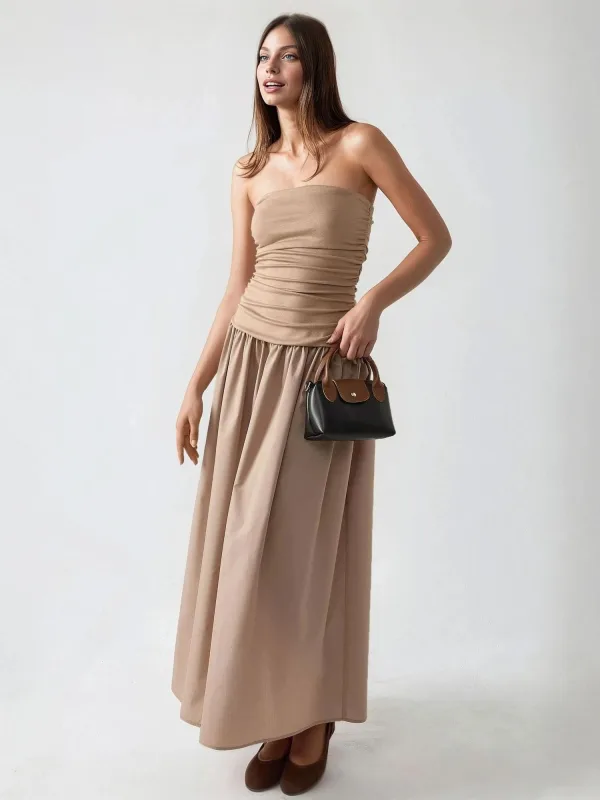Design: Gevoerde zoom/rand, Rechte zoom, Strapless/off-shoulder; Motief: Effen; Soort bandjes: Bandeau; Details: Gedrapeerd; Extra's: Op staal naden, Voelt zacht aan; Lengte: Lang/maxi; Snit: Getailleerd; Pasvorm: Slanke pasvorm; Armlengte: Mouwloos