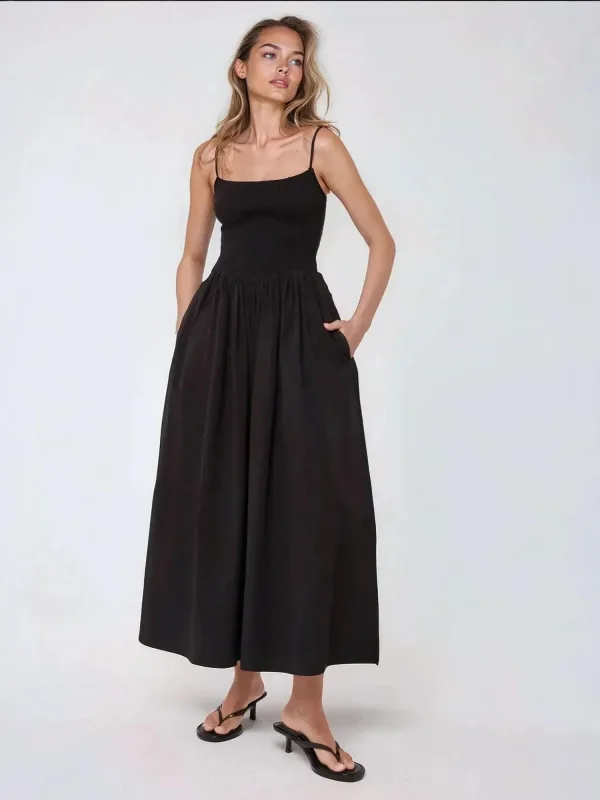 Design: Gevoerde zoom/rand, Zakken aan de zijkant; Materiaal: Katoen; Halstype: Carréhals; Motief: Effen; Soort bandjes: Spaghettibandjes; Details: Gedrapeerd; Extra's: Verstelbare bandjes, Op staal naden; Lengte: 7/8 lengte; Snit: Getailleerd; Pasvorm: Normale pasvorm; Armlengte: Mouwloos