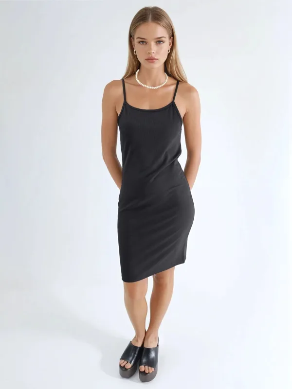 Design: Gevoerde zoom/rand, Rechte zoom; Halstype: Ronde hals; Motief: Effen; Soort bandjes: Spaghettibandjes; Extra's: Op staal naden, Voelt zacht aan; Lengte: Knielengte; Snit: Recht; Pasvorm: Aansluitende pasvorm; Armlengte: Kwartmouw