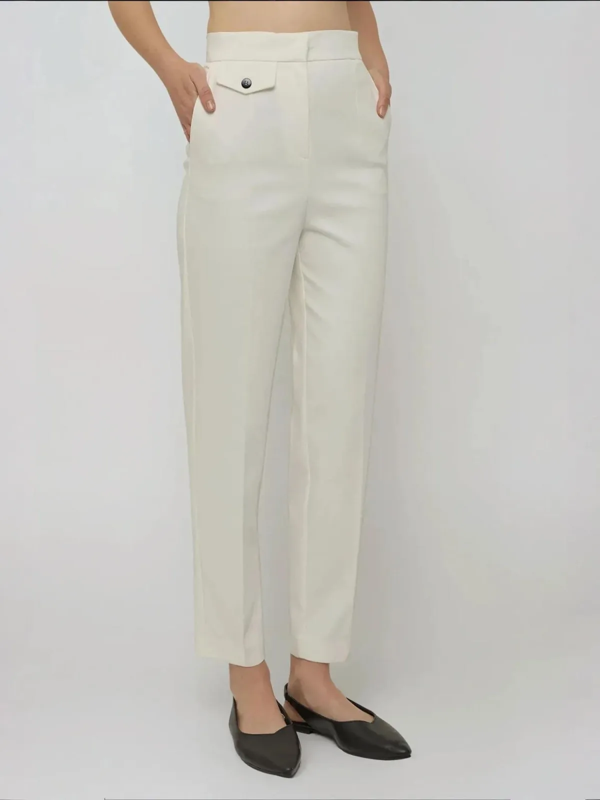 Design: Verborgen rits, Zakken aan de zijkant, Haaksluiting; Type sluiting: Ritssluiting; Materiaal: Katoen; Motief: Effen; Details: Plooien; Extra's: Op staal naden, Voelt zacht aan; Lengte: 7/8 lengte; Pasvorm: Regular; Taillehoogte: High waist
