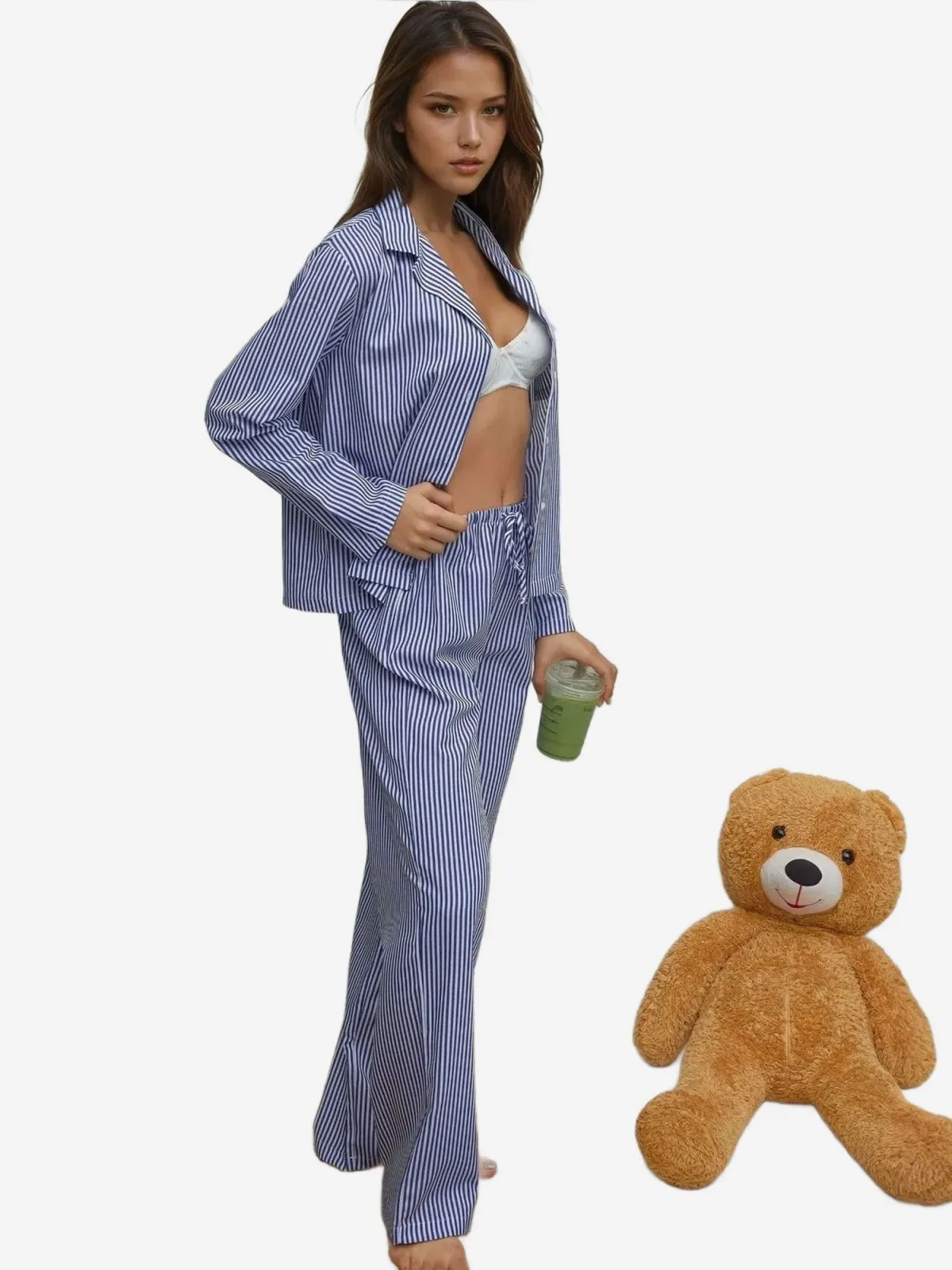 Design: Elastische taille/zoom, Knop placket; Materiaal: Katoen; Motief: Gestreept; Details: Gedrapeerd; Extra's: All-over patroon; Aantal per set: 2-delig