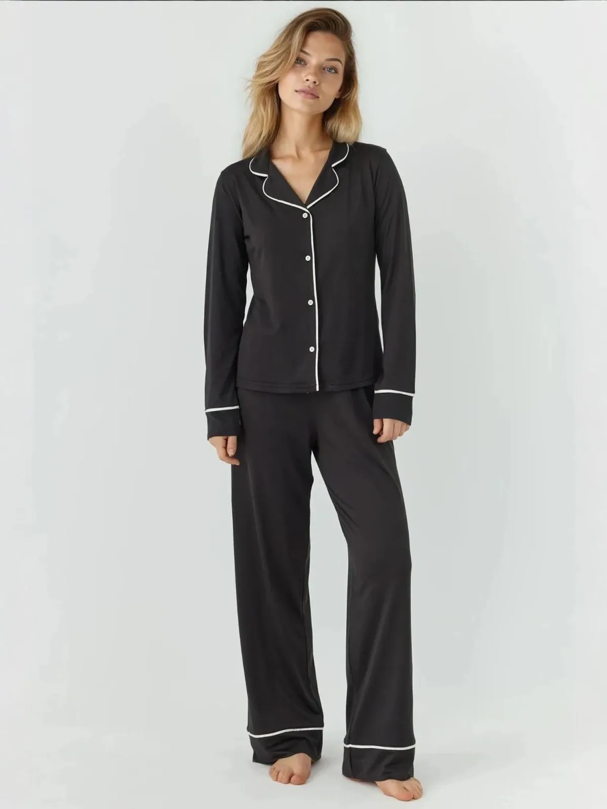 Design: Gevoerde zoom/rand, Elastische taille/zoom, Revers kraag; Materiaal: Jersey; Motief: Effen; Extra's: Op staal naden; Aantal per set: 2-delig