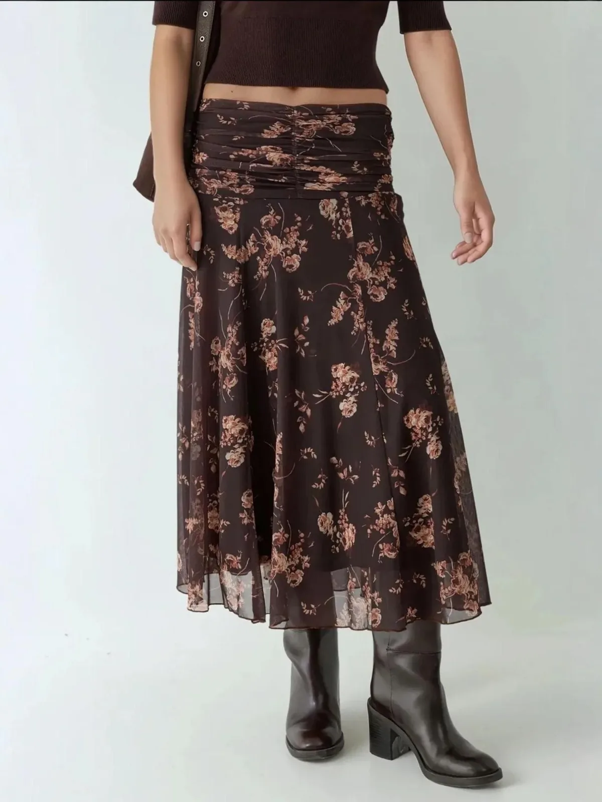 Design: Wijde taille; Materiaal: Chiffon; Motief: Bloemenprint; Rokvorm: A-lijn rok; Details: Gedrapeerd; Extra's: All-over patroon; Lengte: 7/8 lengte; Pasvorm: Normale pasvorm