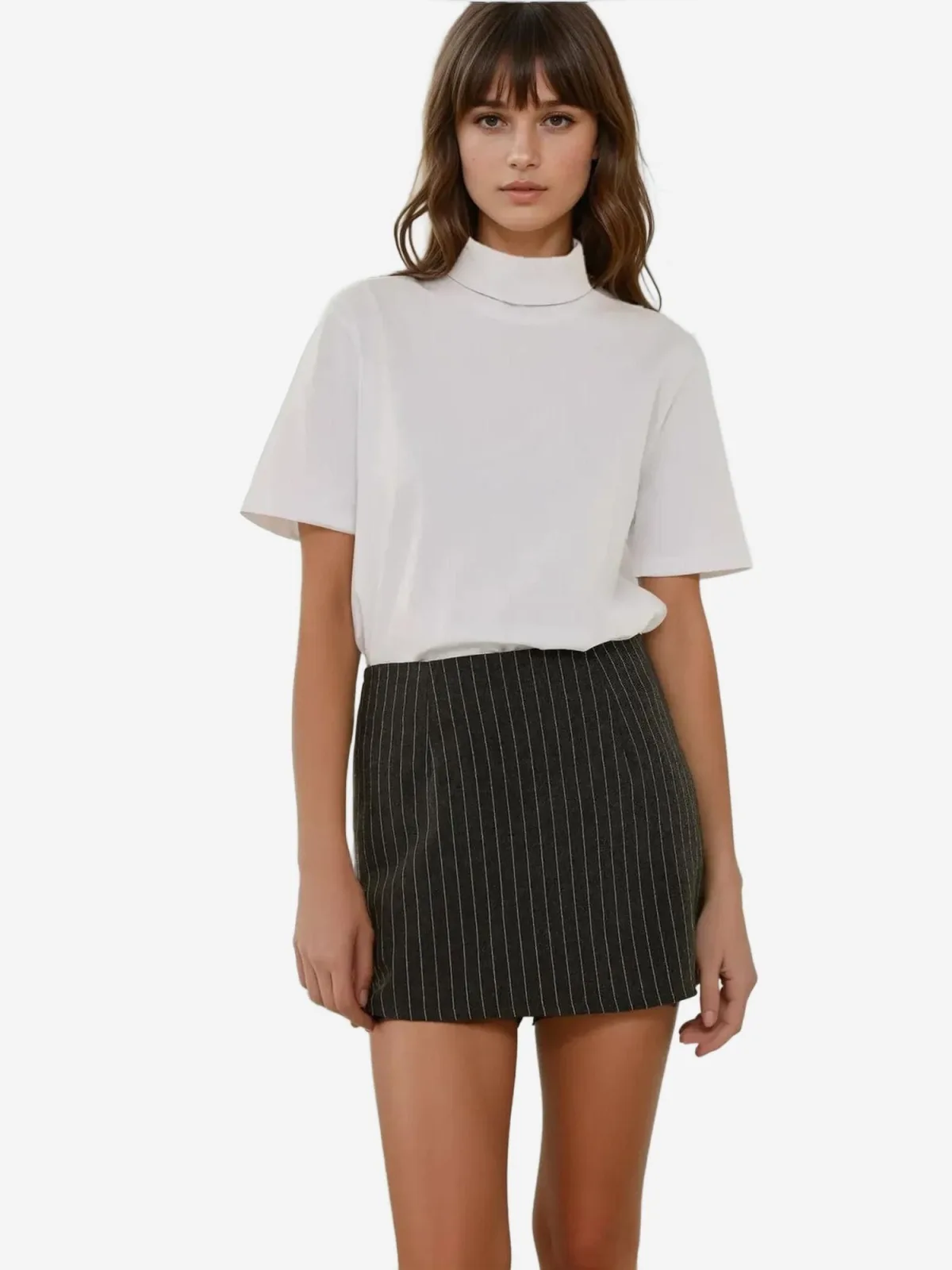 Design: Gevoerde zoom/rand, Rechte zoom; Motief: Krijtstrepen; Rokvorm: Minirok; Details: Plooien; Extra's: All-over patroon, Buigzame grip; Lengte: Kort/mini; Pasvorm: Normale pasvorm