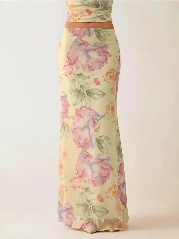 Design: Gevoerde zoom/rand; Motief: Bloemenprint; Extra's: All-over patroon; Lengte: Lang/maxi; Pasvorm: Slanke pasvorm