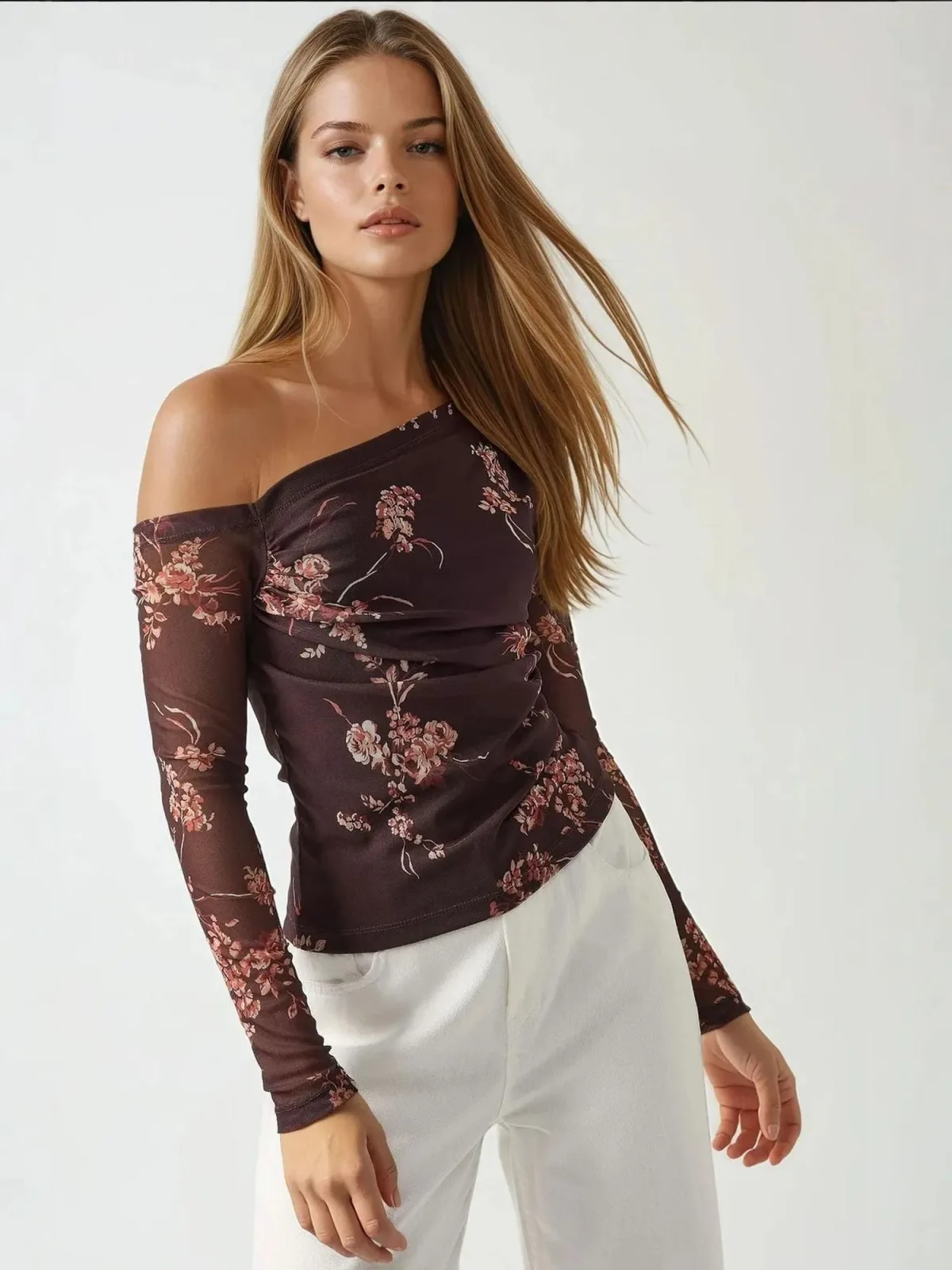 Blouse type: Blouseshirt; Design: Gevoerde zoom/rand; Motief: Bloemenprint; Details: Plooien, Gedrapeerd; Extra's: All-over patroon; Pasvorm: Slanke pasvorm; Armlengte: Lange mouw; Lengte: Korte pasvorm