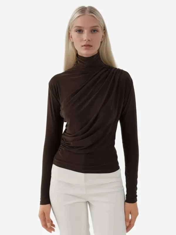 Design: Gevoerde zoom/rand, Rechte zoom; Materiaal: Jersey; Halstype: Opstaande kraag; Motief: Effen; Details: Plooien, Gedrapeerd; Extra's: Op staal naden, Voelt zacht aan; Pasvorm: Normale pasvorm; Armlengte: Lange mouw; Lengte: Normale lengte