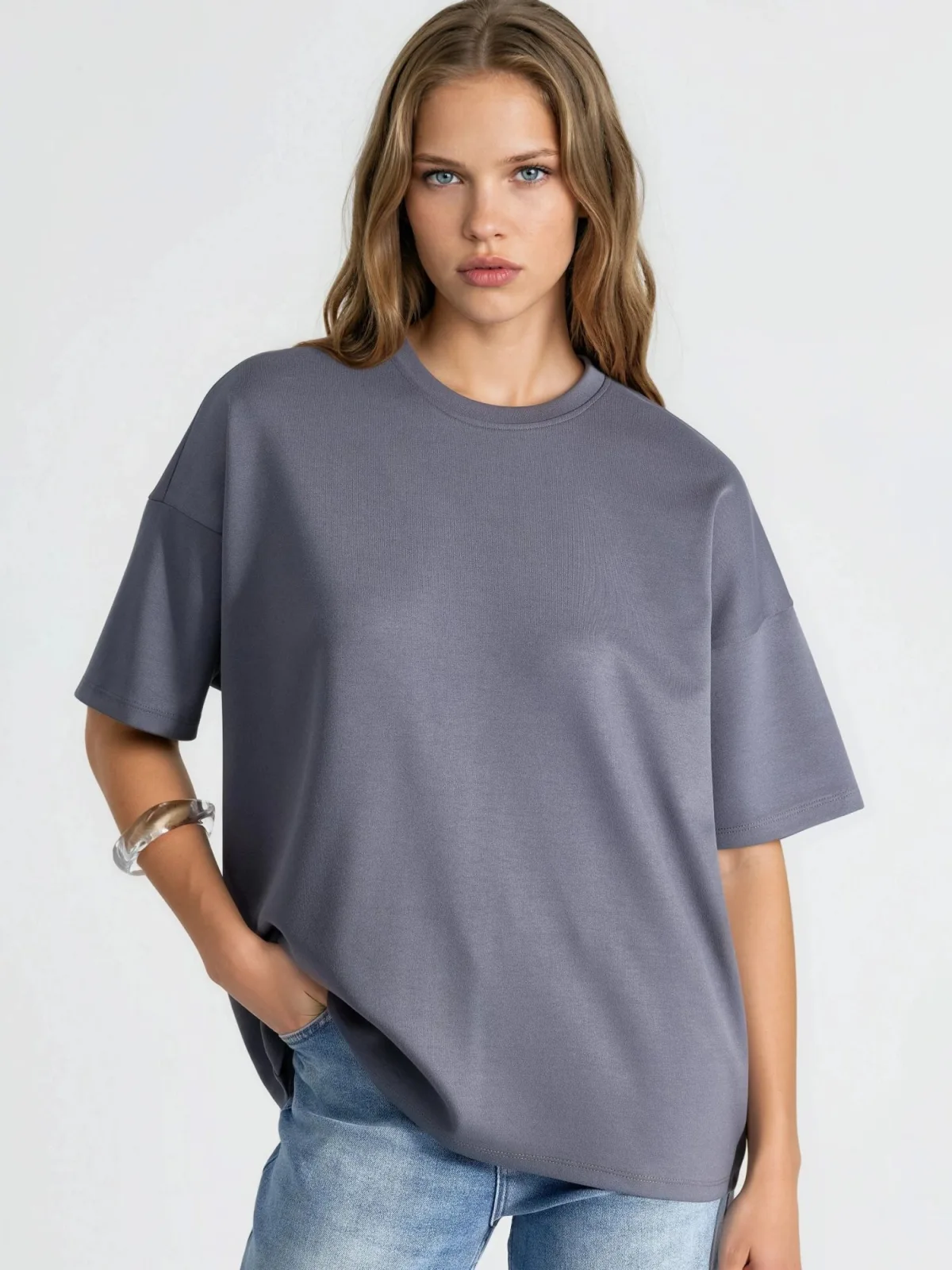 Design: Gevoerde zoom/rand, Rechte zoom, Overcut schouder; Materiaal: Jersey; Halstype: Ronde hals; Motief: Effen; Extra's: Op staal naden, Voelt zacht aan; Pasvorm: Wijde pasvorm; Armlengte: Halve mouw; Lengte: Normale lengte