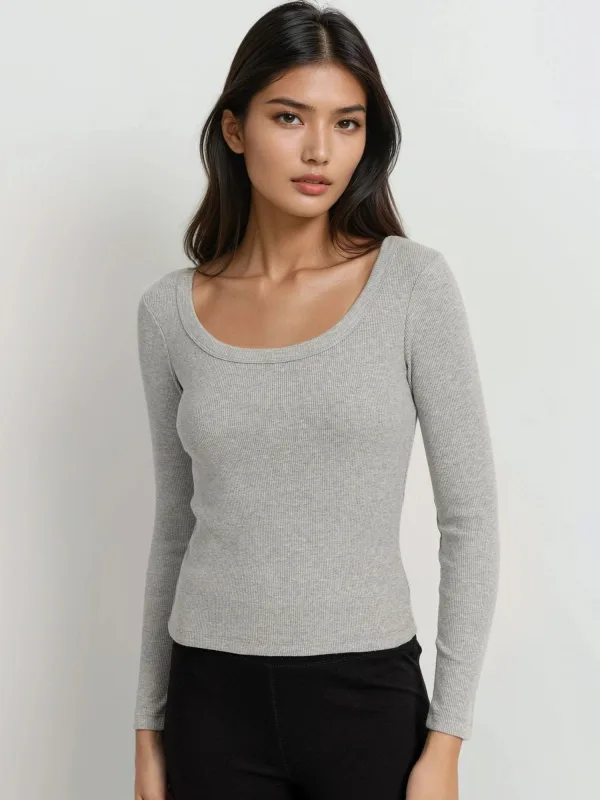 Design: Gevoerde zoom/rand; Materiaal: Jersey; Halstype: Ronde hals; Motief: Mélange; Extra's: Op staal naden; Pasvorm: Slanke pasvorm; Armlengte: Lange mouw; Lengte: Normale lengte