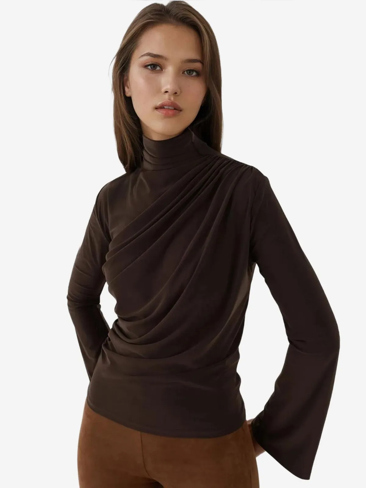 Design: Gevoerde zoom/rand, Trompetmouwen; Materiaal: Jersey; Halstype: Opstaande kraag; Motief: Effen; Details: Gedrapeerd; Extra's: Op staal naden, Voelt zacht aan; Pasvorm: Normale pasvorm; Armlengte: Lange mouw; Lengte: Normale lengte