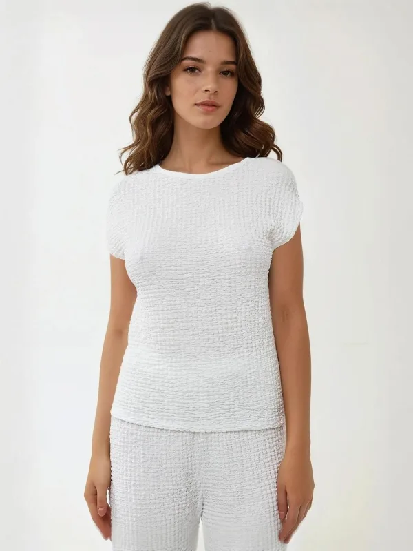 Design: Gevoerde zoom/rand, Rechte zoom; Halstype: Ronde hals; Motief: Effen; Extra's: Op staal naden, Met textuur; Pasvorm: Normale pasvorm; Armlengte: Kwartmouw; Lengte: Normale lengte