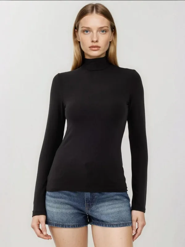 Design: Gevoerde zoom/rand, Rechte zoom; Materiaal: Jersey; Halstype: Opstaande kraag; Motief: Effen; Extra's: Op staal naden, Voelt zacht aan; Pasvorm: Slanke pasvorm; Armlengte: Lange mouw; Lengte: Normale lengte