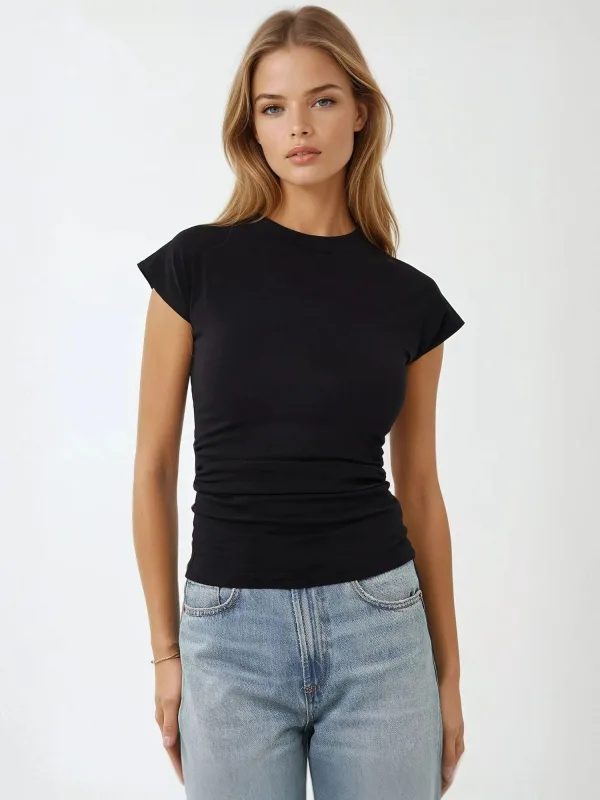 Design: Gevoerde zoom/rand; Materiaal: Jersey; Halstype: Ronde hals; Motief: Effen; Details: Gedrapeerd; Extra's: Voelt zacht aan; Pasvorm: Aansluitende pasvorm; Armlengte: Kwartmouw; Lengte: Normale lengte