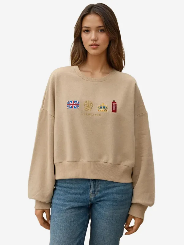 Design: Overcut schouder; Materiaal: Sweatstof; Halstype: Ronde hals; Motief: Motiefprint; Details: Borduursels; Extra's: Voelt zacht aan; Pasvorm: Losse pasvorm; Armlengte: Lange mouw; Lengte: Normale lengte