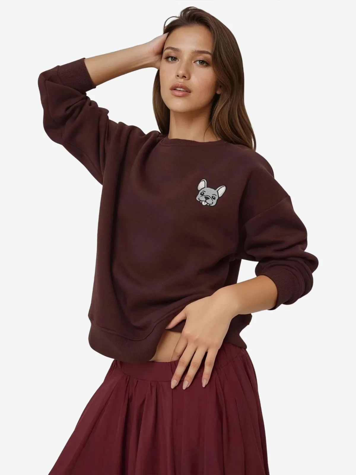 Design: Gevoerde zoom/rand, Rechte zoom; Materiaal: Sweatstof; Halstype: Ronde hals; Motief: Effen; Details: Borduursels; Extra's: Op staal naden, Voelt zacht aan; Pasvorm: Losse pasvorm; Armlengte: Lange mouw; Lengte: Normale lengte
