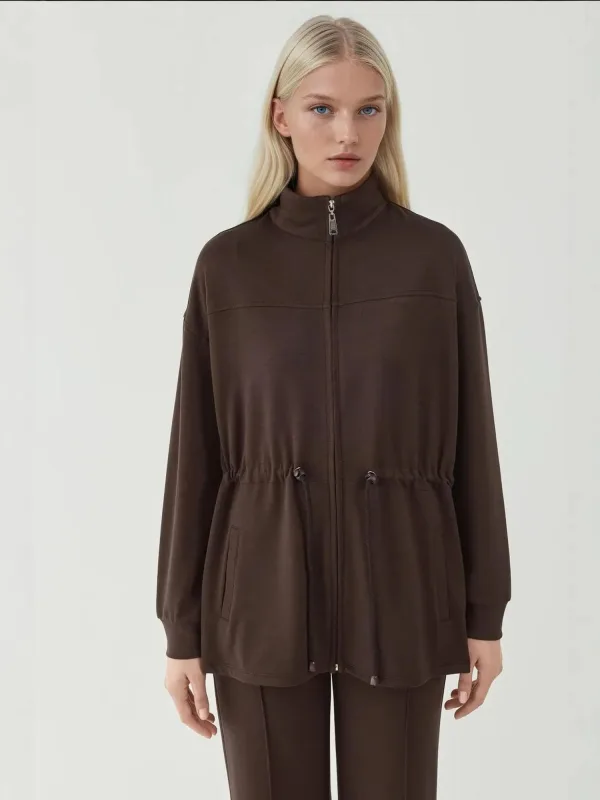Design: Gevoerde zoom/rand; Type sluiting: Ritssluiting; Materiaal: Sweatstof; Halstype: Opstaande kraag; Motief: Effen; Details: Gedrapeerd; Extra's: Op staal naden; Pasvorm: Normale pasvorm; Armlengte: Lange mouw; Lengte: Normale lengte