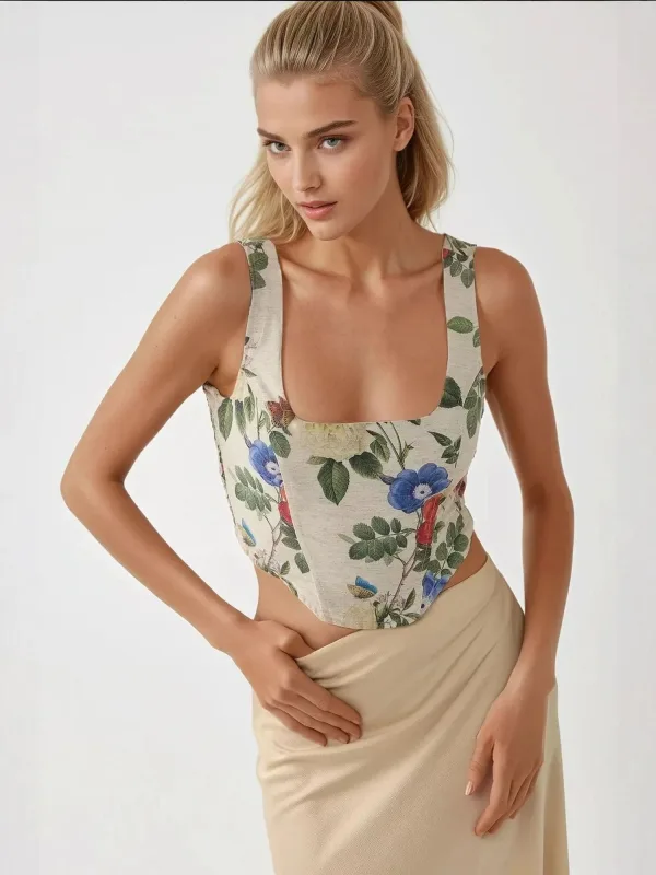 Design: Diepe snit/decolleté; Halstype: Carréhals; Motief: Bloemenprint; Soort bandjes: Normale bandjes; Extra's: All-over patroon; Pasvorm: Aansluitende pasvorm; Armlengte: Kwartmouw; Lengte: Korte pasvorm