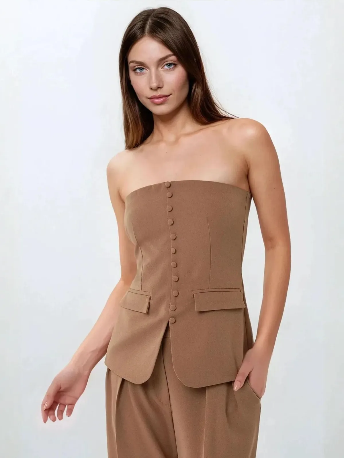 Design: Placket, Rechte zoom, Rug rits, Opzet-/flapzak; Motief: Effen; Soort bandjes: Bandeau; Details: Backless; Extra's: Op staal naden, Voelt zacht aan; Pasvorm: Slanke pasvorm; Armlengte: Mouwloos; Lengte: Normale lengte