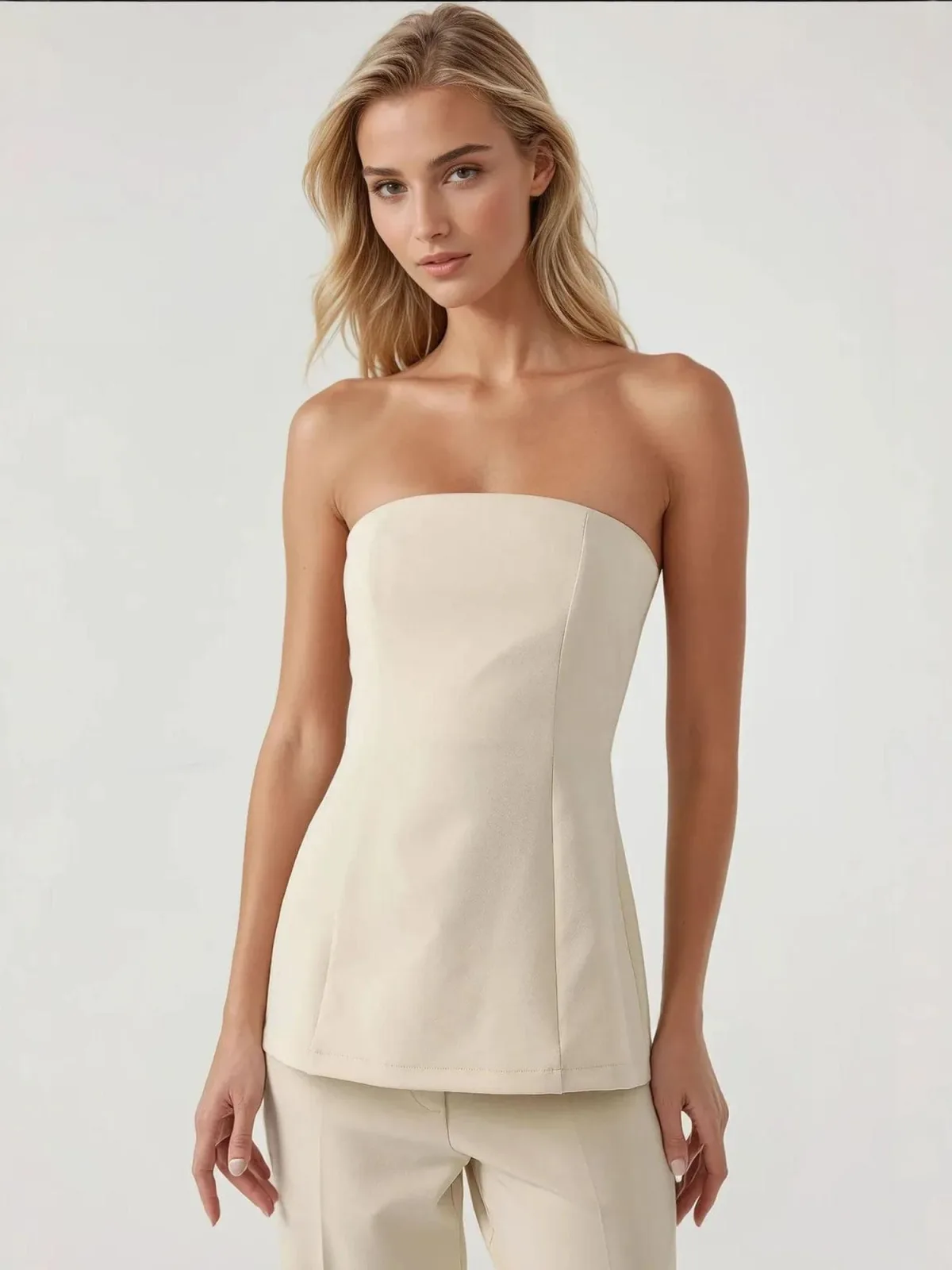 Design: Gevoerde zoom/rand, Rechte zoom; Materiaal: Jersey; Halstype: Carmen hals; Motief: Effen; Soort bandjes: Bandeau; Extra's: Op staal naden, Fijne stof; Pasvorm: Normale pasvorm; Armlengte: Mouwloos; Lengte: Normale lengte